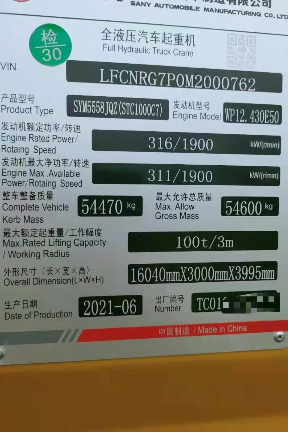 | Date of Manufacture | 2021-06 |
