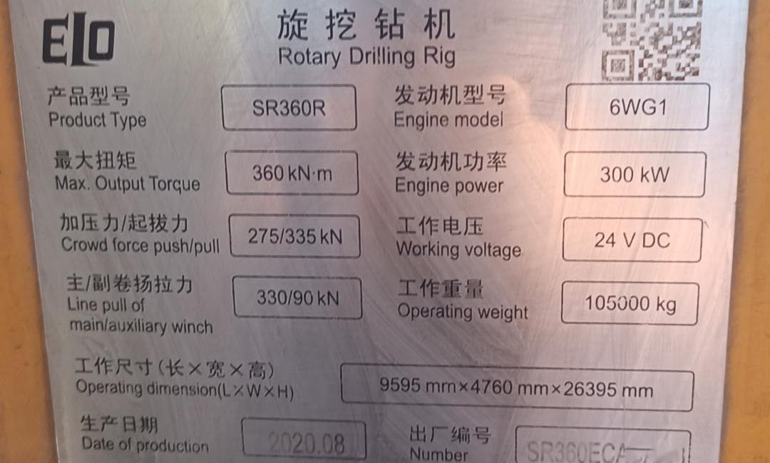 เครื่องเจาะหมุน SANY SR360R มือสอง ปี 2020